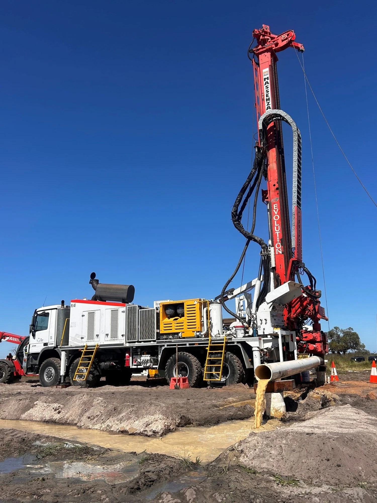 Custom purpose-built air-core system specially designed for paleochannel water exploration, capable of measuring yields up to 15L/s during the water exploration phase.